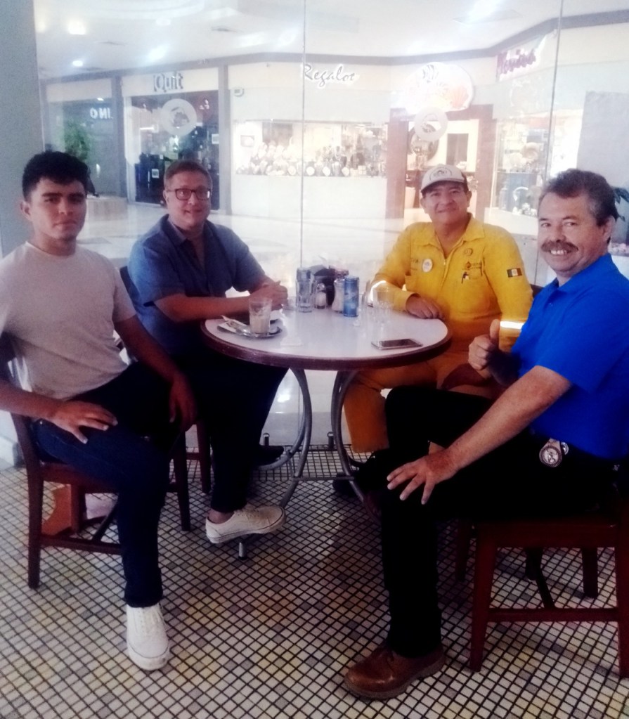 Les saludo esta vez, queridos amigos, desde el Café de la Parroquia en Plaza las Américas, donde me reuní con mi gran amigo, colega estudioso de la historia y de sus aplicaciones prácticas, y además mi querido «hermano arqueológico», el antropólogo y guía de turistas xalapeño Israel Guillermo Macías Lagunes, después de un año de no vernos a causa de la pandemia.