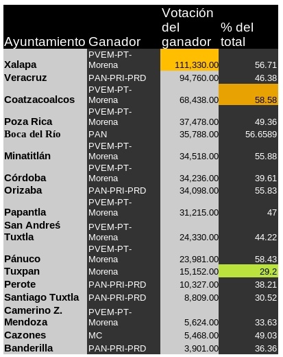 El caso de Coatzacoalcos también es bastante llamativo, porque el candidato de Morena a la alcaldía, Amado Cruz Malpica, tuvo el porcentaje más alto de votación de todo el estado, de cualquiera de los partidos, para los municipios medianos y grandes, con el 58.58%.