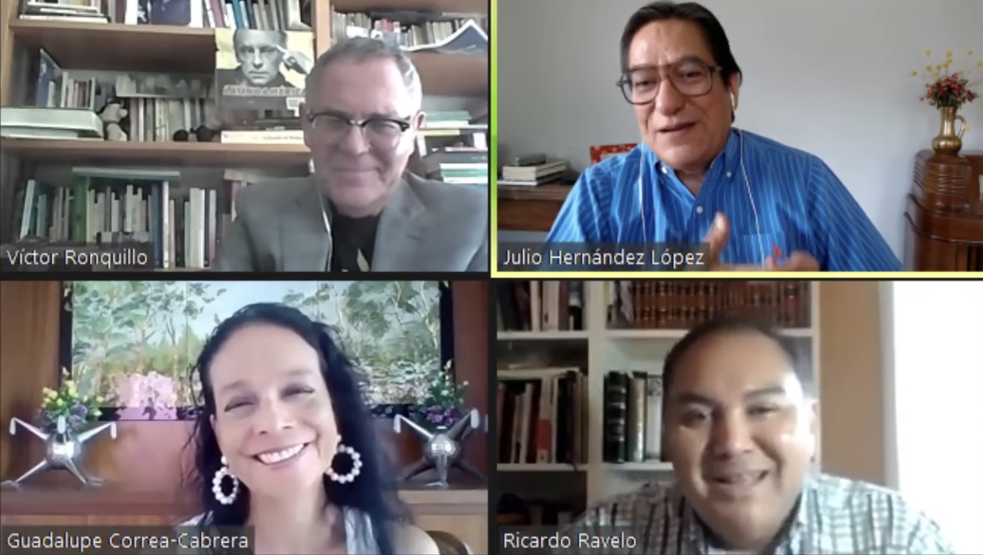 Una discusión entre Guadalupe Correa, Victor Ronquillo y Ricardo Ravelo, egresado de la FACICO, sobre temas del crimen organizado tras las elecciones del 6 de junio, en un debate televisivo por internet, organizado por el periodista Julio Astillero. (Haga click en la pantalla de abajo para ver el video)