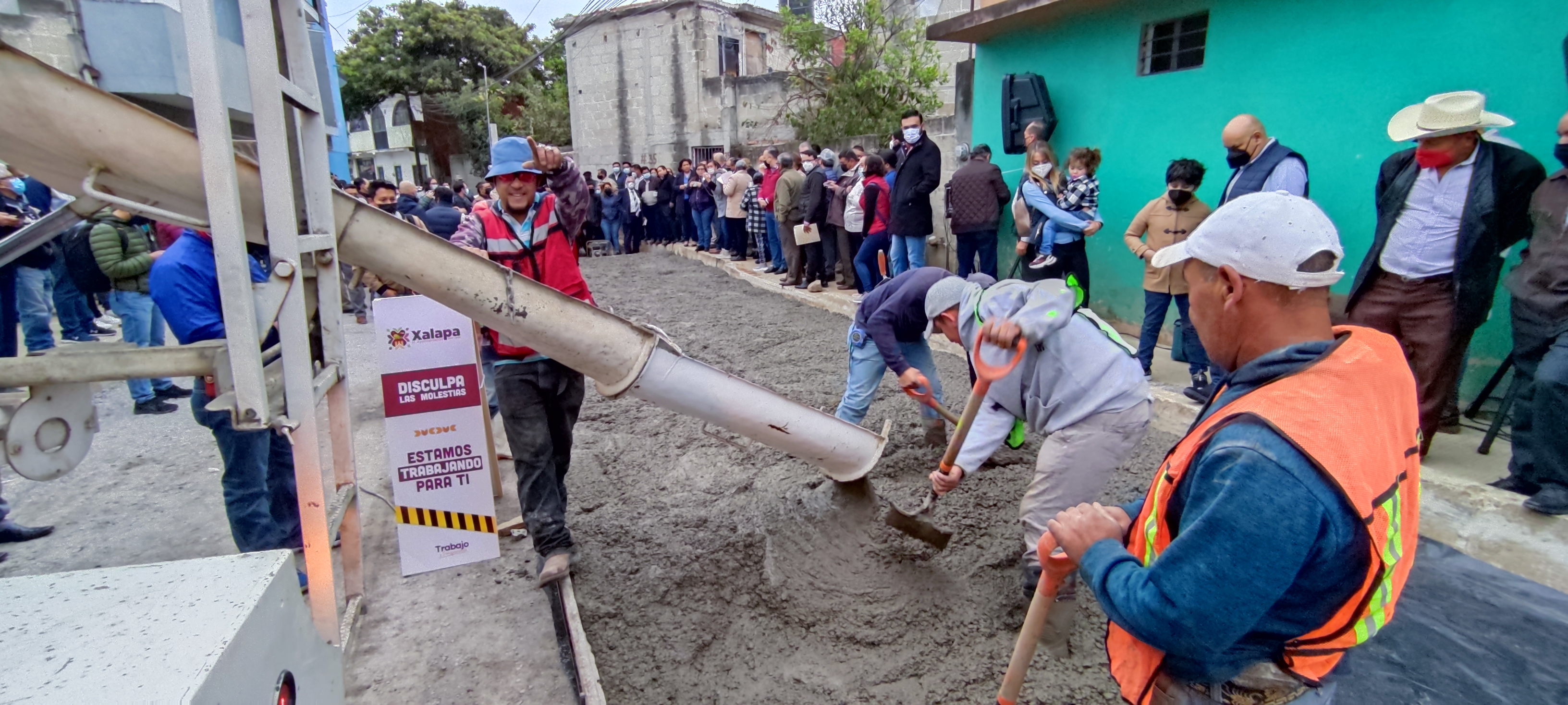 Antes de que el camión de olla empezara a regar el concreto hidráulico para formar una carpeta de 15 centímetros de espesor y la construcción de Pavimento de Concreto Hidráulico MR=38 kg/cm2, el alcalde aprovechó para informar a los vecinos ahí reunidos sobre las características técnicas de la obra: tiene una meta de 1,388.31 m2 Longitud 223 metros.