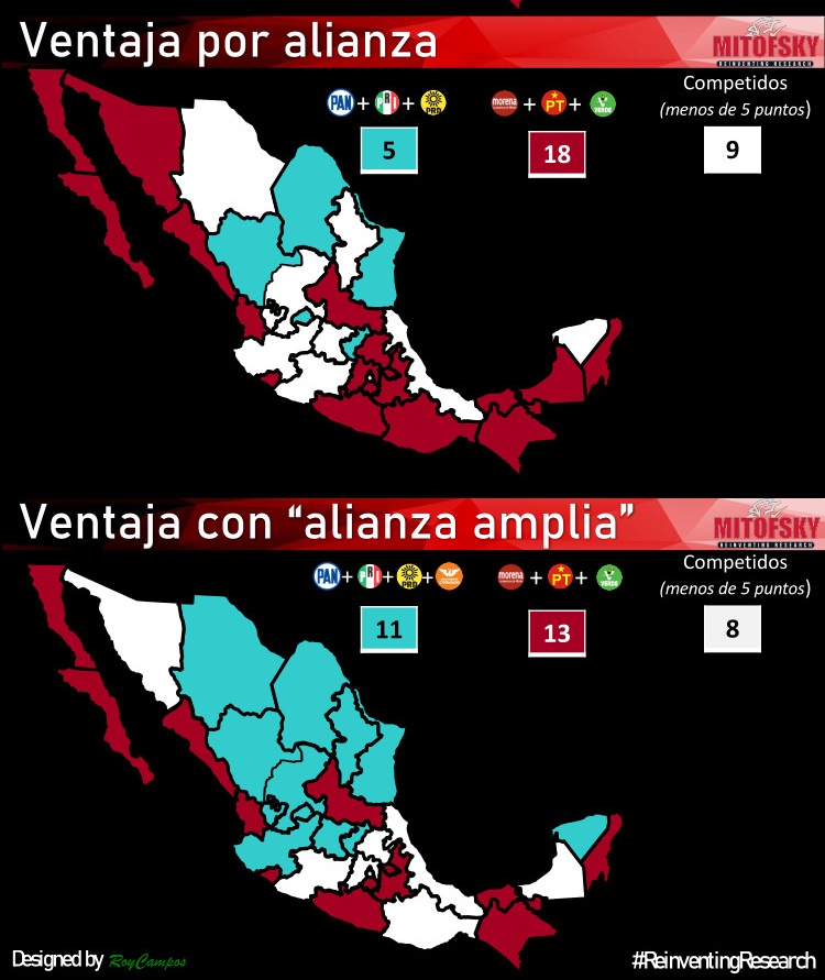 Este que es un panorama sin tomar en cuenta candidatos, puede variar, ciertamente, cuando se le pongan nombres a las mediciones con la mismas tendencias, la de coaliciones.