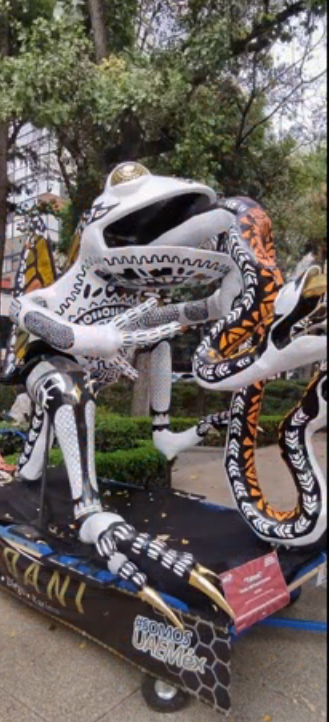 El alebrije es un tipo de artesanía originaria de México. Se trata de artesanías fabricadas con cartón o papel, y estructura de alambre, o con madera (tradicionalmente de copal), que se pintan con colores mayormente alegres y vibrantes. Los alebrijes son seres imaginarios conformados por elementos fisonómicos de animales diferentes, una combinación de varios animales, no solo fantásticos sino también reales que forman un ser fantástico.los alebrijes surgieron en el año 1933