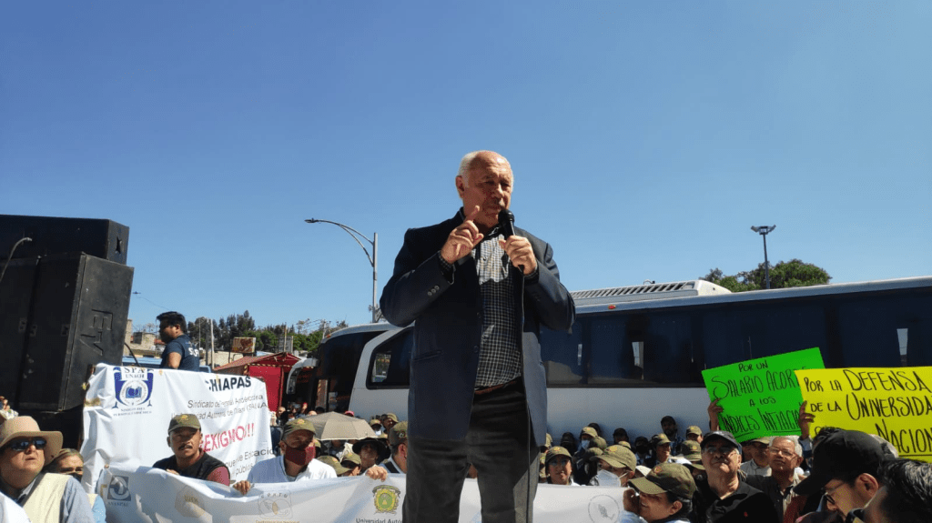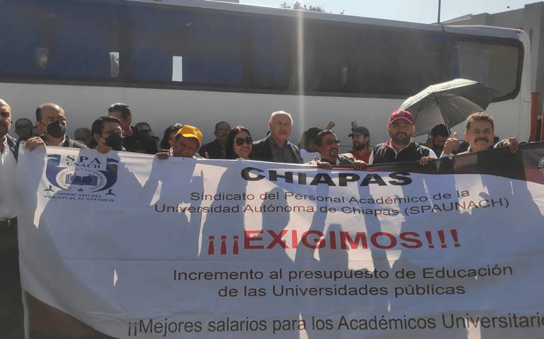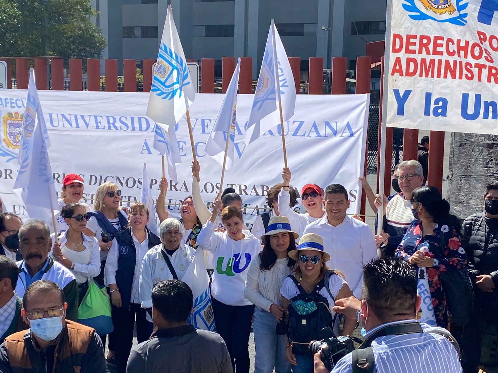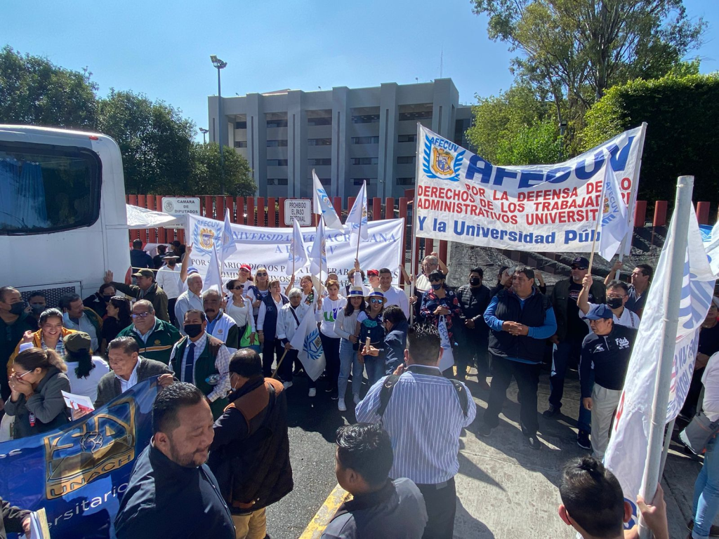 «Les exigimos que nos escuchen para presentarles la iniciativa que viene respaldada con más de 150 mil firmas, con esto logramos cubrir la cuota que señala la Ley del 0.13 por ciento del listado nominal. Venimos preparados, no venimos con las manos vacías, venimos comprometidos, pero también venimos con el corazón en la mano, que es el corazón del sindicalismo universitario», aseveró en su discurso.