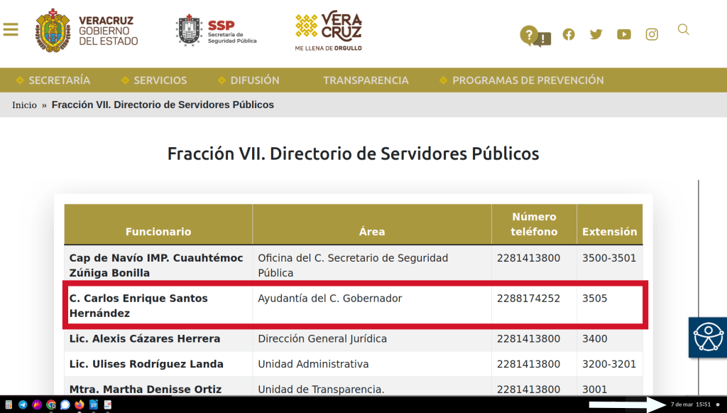 Otro detalle con Santos Hernández, es que siempre pedía que lo llamaran “capitán”, pero en el mismo directorio de la SSP aparece como “C” o ciudadano, mientras que los demás enlistados tienen algún titulo profesional. De hecho, al buscar su curriculum, el mismo no existe. Entonces, lo de “capitán”, está en duda.