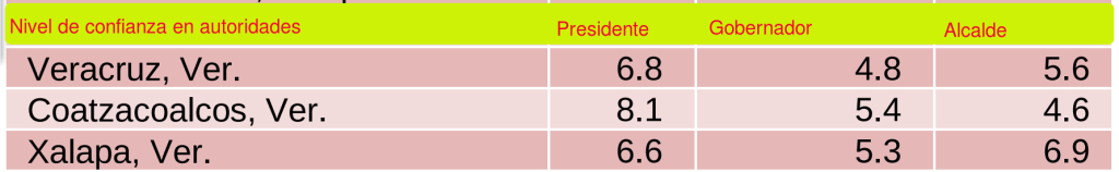 La ENSU agregó en su última encuesta un “nivel de confianza en los actores de la administración pública” y resulta que según la misma, el presidente Andrés Manuel López Obrador es el mejor evaluado en Veracruz y Coatzacoalcos, con 6.8 y 8.1 de calificación, sobre 10.
