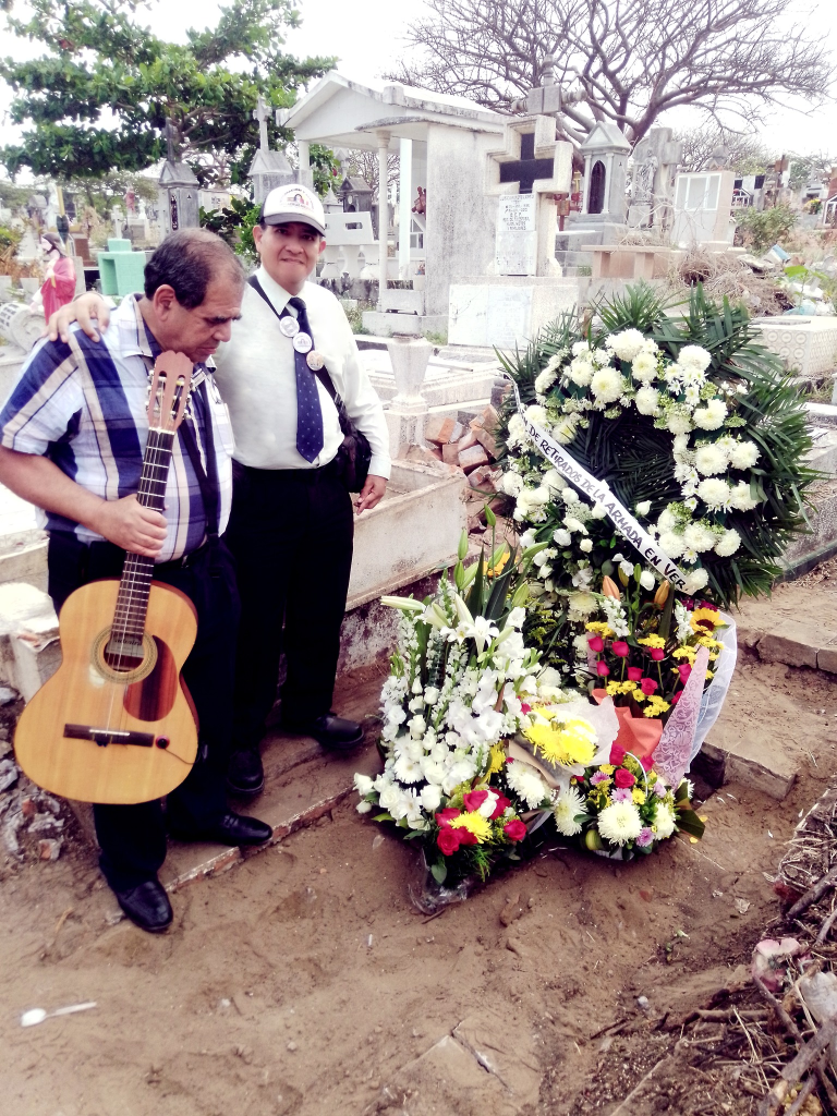 Mi padre siempre fue también un hombre muy solidario con los otros y pese a los años malos, siempre pagó puntualmente la ayuda mutua de la Asociación de Marinos Retirados de la Armada de México en Veracruz. Y esta le correspondió con una corona de flores y la gente que ayudó en vida, depositaron muchas flores hasta dejar señalada la tumba con un pequeño jardín multicolor, con la sencillez pero espontaneidad que tanto le gustaba al capitán Gaspar. Aunque en Veracruz adquirió cierta cultura y refinamiento, en esencia nunca dejó de ser, al igual que mi madre, una sencilla persona de campo y nunca renegó de sus orígenes humildes ni le dio la espalda. Mientras depositaban los muchos ramos de flores, con los acordes de guitarra le cantaron CUANDO ALLÁ SE PASE LISTA y MUÉVETE EN MI, cuyo video les comparto, queridos amigos.