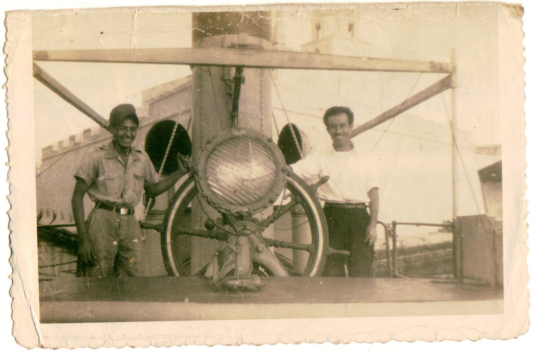 El capitán me dejó en herencia sus libros, documentos de su paso por la Armada de México, fotos y medallas. Una de ellas se las quise compartir: es mi padre, joven y delgado, en los años 60 sonriente con su uniforme de faena junto al reflector y timón del famoso remolcador Nereida, el mismo que abordó el presidente Porfirio Díaz en marzo de 1902 para inaugurar las obras del nuevo puerto artificial de Veracruz. Junto a él a la derecha, está otro marino querido por mi: don Abdías, él y su esposa serían mis padrinos muchos años después cuando vine al mundo. Atrás de ellos se aprecia el baluarte de San Crispín de la fortaleza de San Juan de Ulúa y la torre de vigilancia conocida como el Caballero Alto o San Felipe el Alto. Así es espero reencontrar a mi padre un día, feliz y sencillo, navegando al timón de su nave por el Paraíso que tiene muros de oro y mar de cristal.