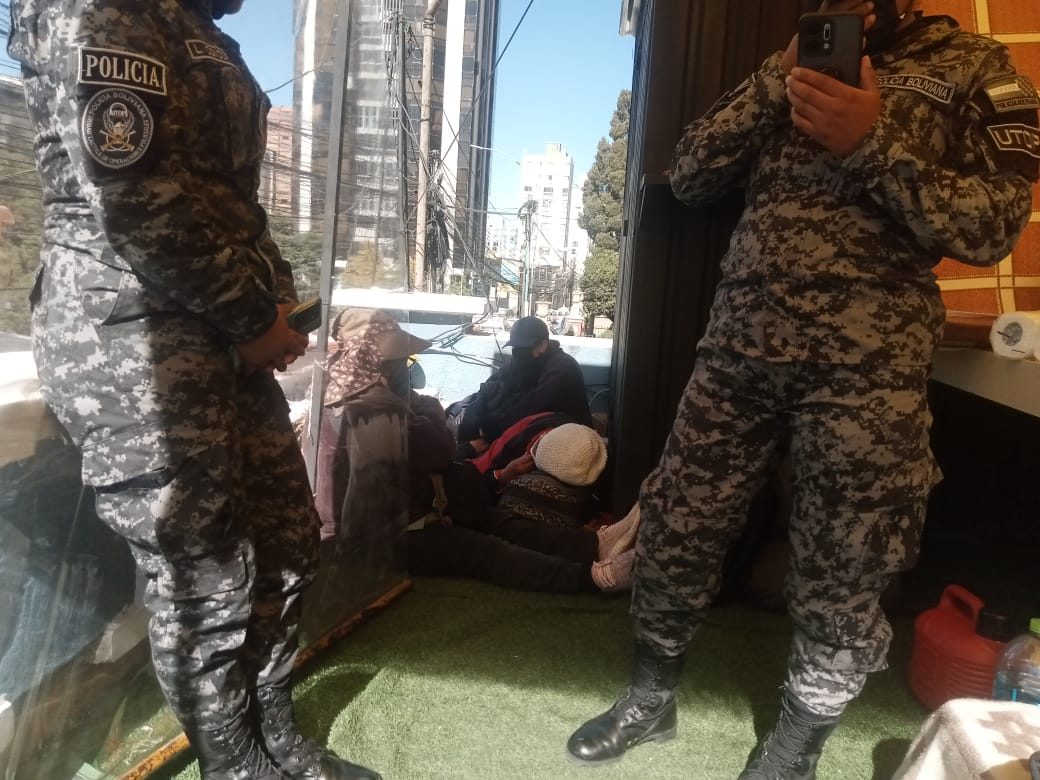 Los medios de comunicación continúan sin poder acercarse a Carvajal. Ayer nuevamente la Policía impidió que periodistas puedan entrevistar a la presidenta de la APDHB, pero no objetó que funcionarios de comunicación gubernamental suban hasta la terraza de la Casa de los Derechos Humanos para registrar la visita que realizó la viceministra.