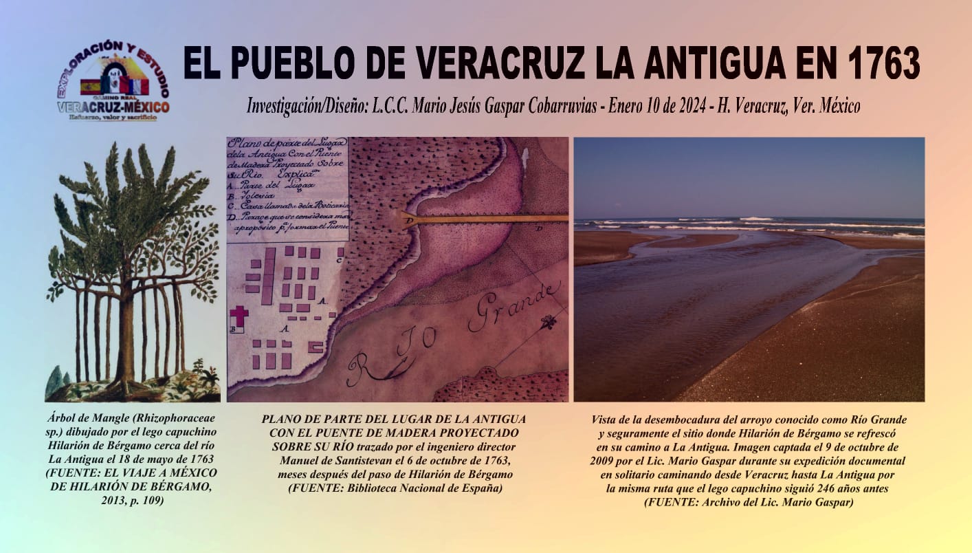 El camino real de Veracruz a México en 1763 salía por la Puerta México (hoy en el cruce de la calle de Constitución y la avenida 5 de mayo, a poca distancia de la iglesia de la Divina Pastora), se dirigía a las playas de la Caleta y caminando a unos 80 metros de la orilla del Golfo de México, se cruzaban los arroyos de Vergara, Río Medio y Río Grande, antes de que el sendero se fuera alejando de las aguas e internándose tierra adentro, poco antes de avistar la desembocadura del río La Antigua, llamado Huitzilapan o de las Canoas en el siglo XVI.