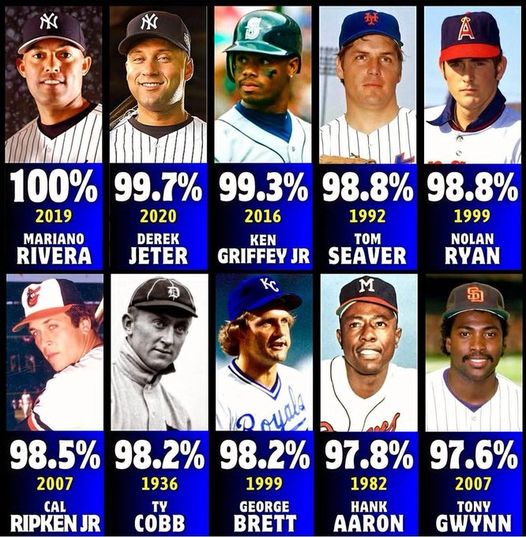 • En Tres y Dos: Relevante saber cuáles han sido los diez porcentajes de votación más altos del Salón de la Fama en la historia de MLB.