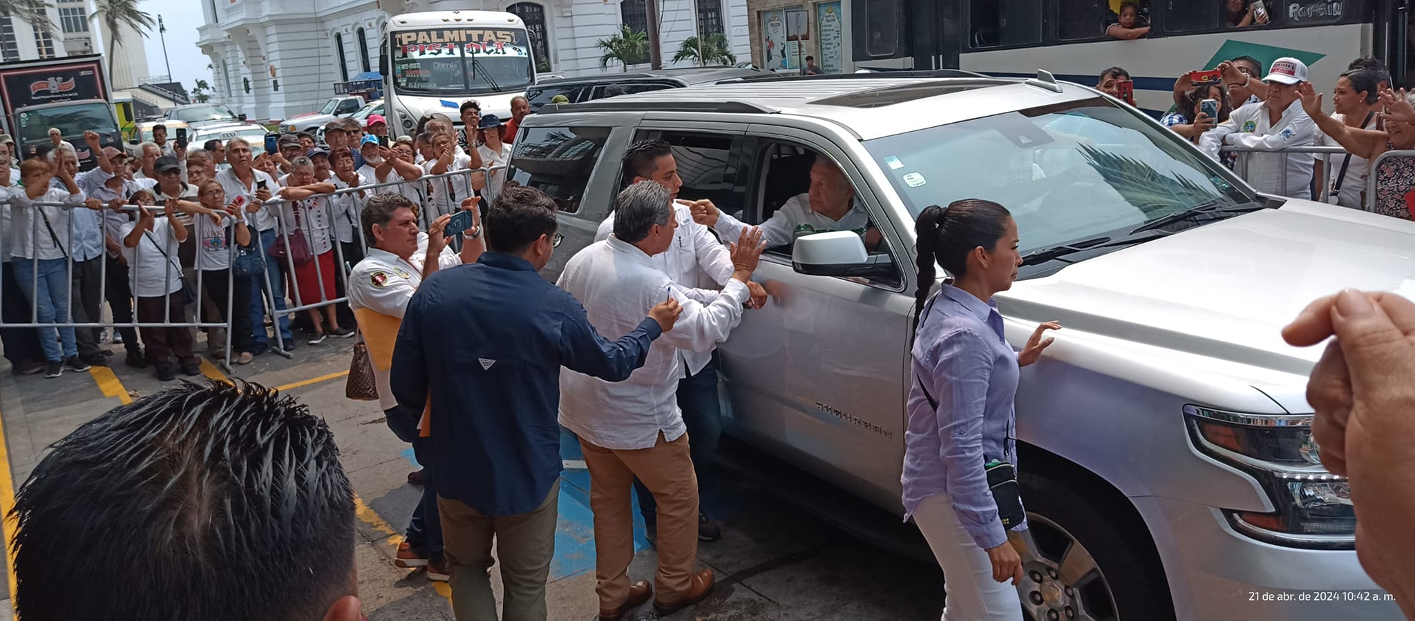 A los trabajadores Portuarios que quedaron en la calle y tienen vida para seguir en la lucha y otros murieron de tristeza y necesidad en el camino le arengaron con porras y palabras de aliento al presidente en su última visita para encabezar la ceremonia de defensa del puerto de Veracruz y de graduación en la Heroica Escuela Naval Militar en Antón Lizardo.