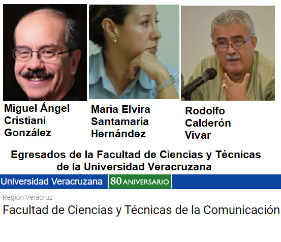 Propuestos por la periodista Irene Arceo Muñiz, serán galardonados los egresados de la Facultad de Ciencias y Técnicas de la Comunicación de la Universidad Veracruzana, los comunicadores Miguel Cristiani González, María Elvira Santamaría Hernández y Rodolfo Calderón Vivar, a quienes se les reconoce, a nivel nacional, su larga trayectoria en medios periodísticos impresos, audiovisuales y digitales en el Estado de Veracruz.