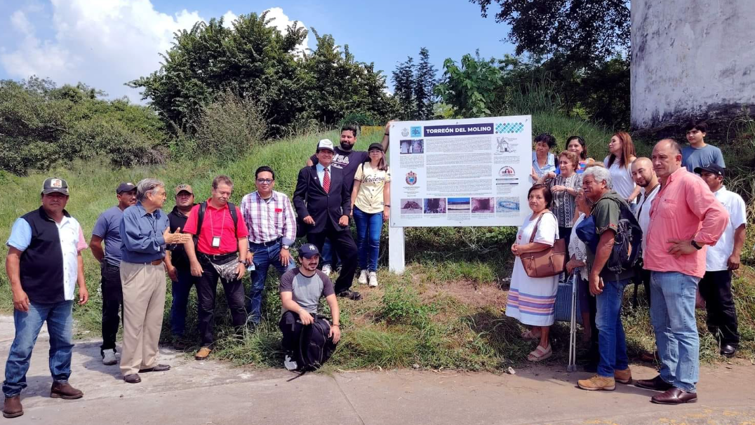A las 12:58 PM se realizó la develación de la nueva placa que mide 1.60 metros de largo y 1.30 de ancho, en el centro exhibe la reseña histórica desde 1701 hasta 2022. En la parte inferior se exhibe parte de los documentos del Archivo General de la Nación que comprueban la existencia del molino de viento en 1748 y 1802, explica el material de que está hecha la torre y sus aspilleras. En la parte superior ilustra la semejanza entre el Torreón del Molino y el molino harinero de San Martín de Meirás levantado en 1790, así como el posible aspecto del molino de viento estando completo en su estructura y dotado de todos sus elementos de operación en el siglo XVIII.