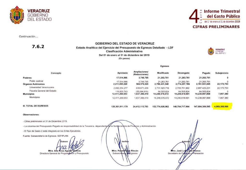 Todo, según los números oficiales, de la Secretaría de Finanzas y Planeación del gobierno de Veracruz.