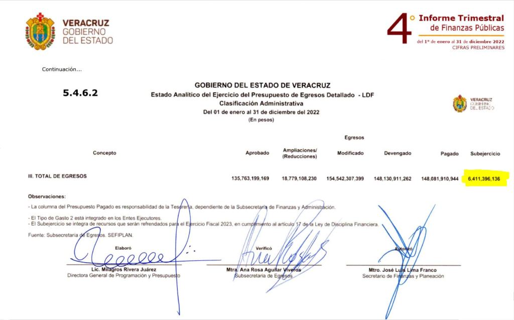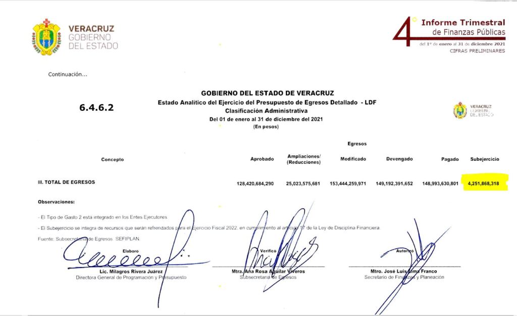En 2018, el último año de gobierno de Miguel Ángel Yunes Linares, el subejercicio fue de 3 mil 31 millones de pesos.