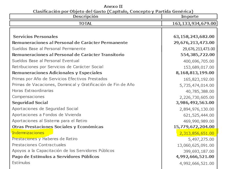 En la Ley de Egresos de 2024 había marcados 2 mil 313 millones 856 mil pesos.