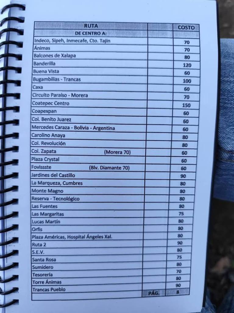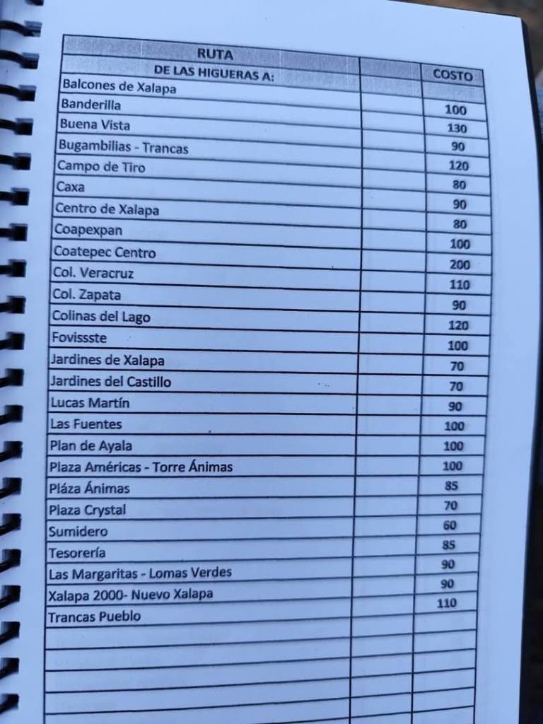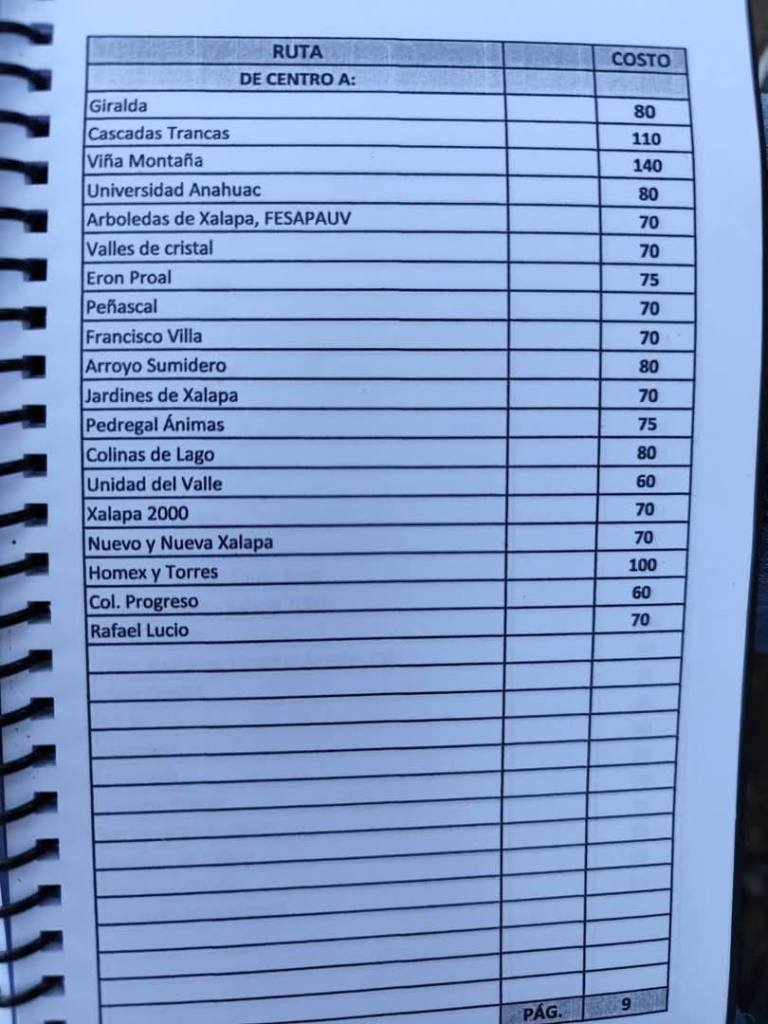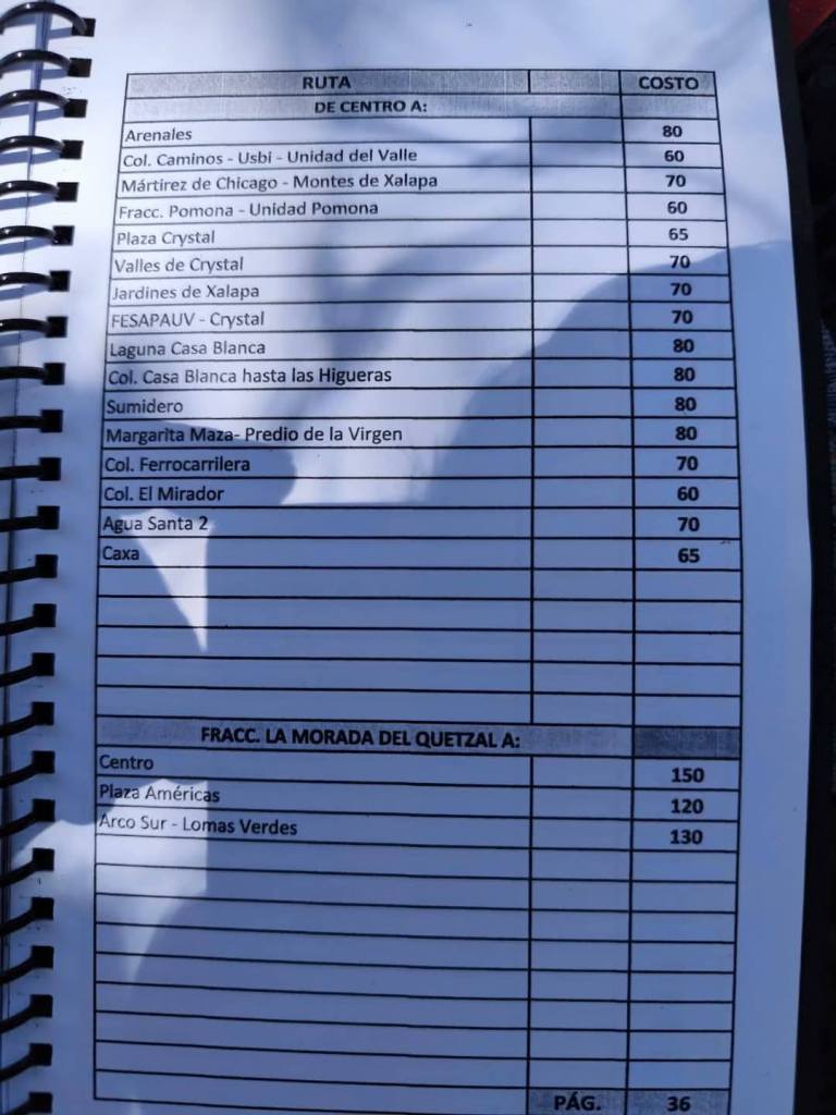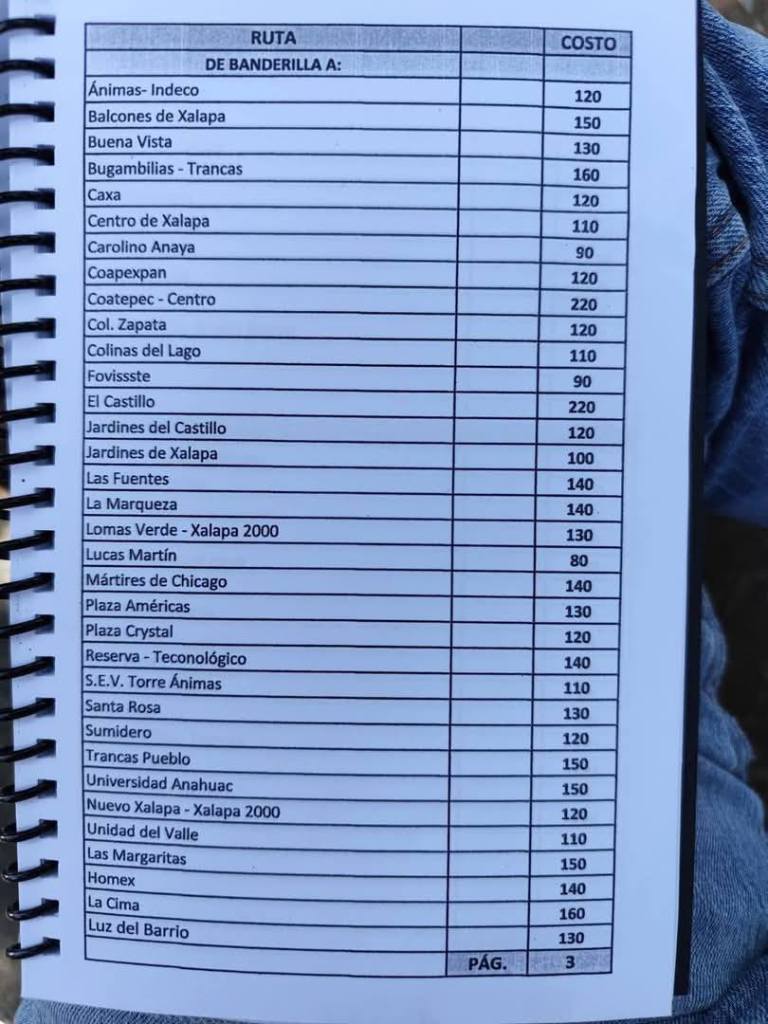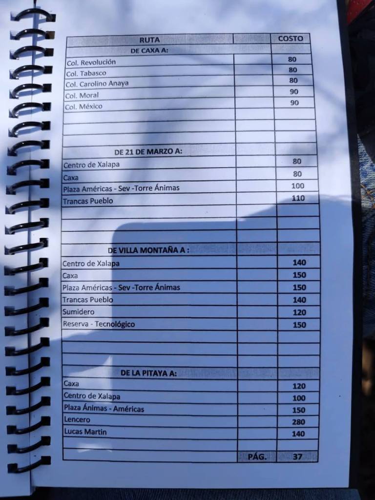 Acostumbrados a medrar con base a la omisión de responsabilidades de gobiernos blandengues morenistas, panistas y priistas que antecedieron a Rocío Nahle, este grupo, escudado en sus organizaciones gremiales se levantó en pie de lucha por la injusticia de que iban a ser objeto por parte del nuevo gobierno estatal. ¿Injusticia? Basta ver los cuadernillos de tarifas de taxis en que se escudan muchos de esos trabajadores del volante, en donde impusieron de cuánto es cada corrida en Xalapa, para darse cuenta a que intereses responden fielmente. Basta un botón de muestra en las siguientes fotos, en la que, de sus pistolotas, algunas agrupaciones taxistas se basan: