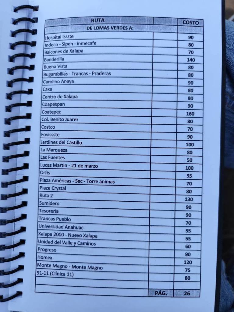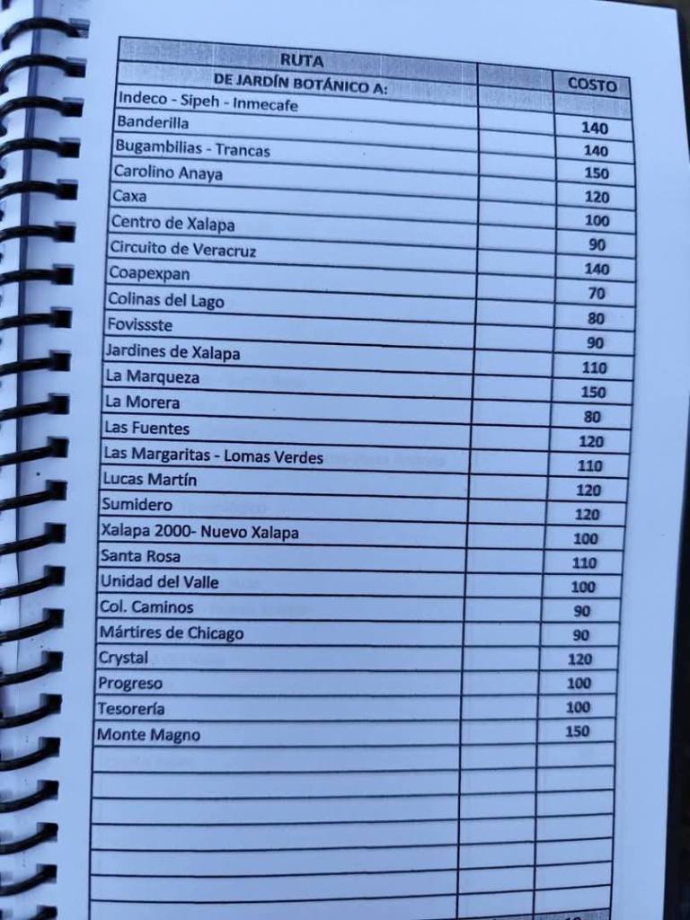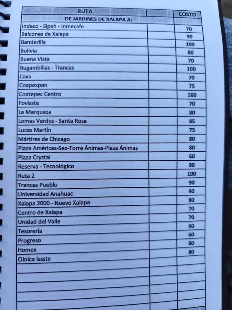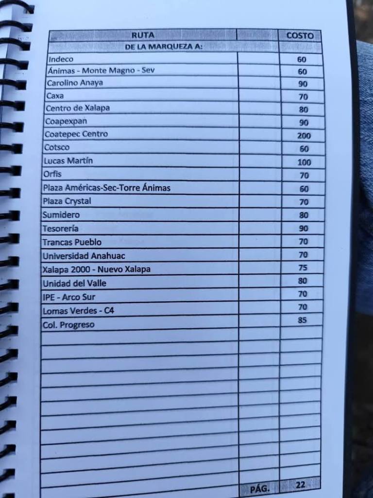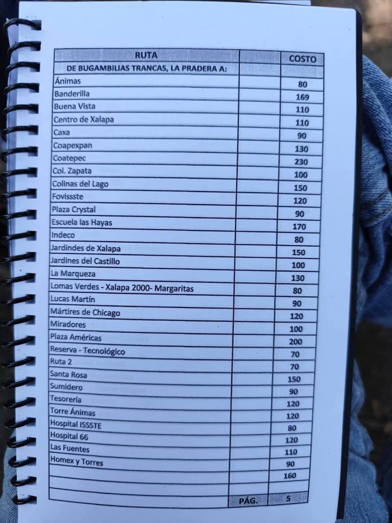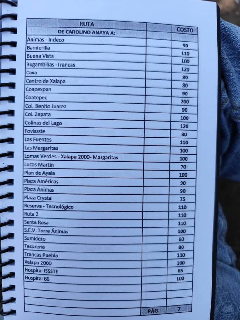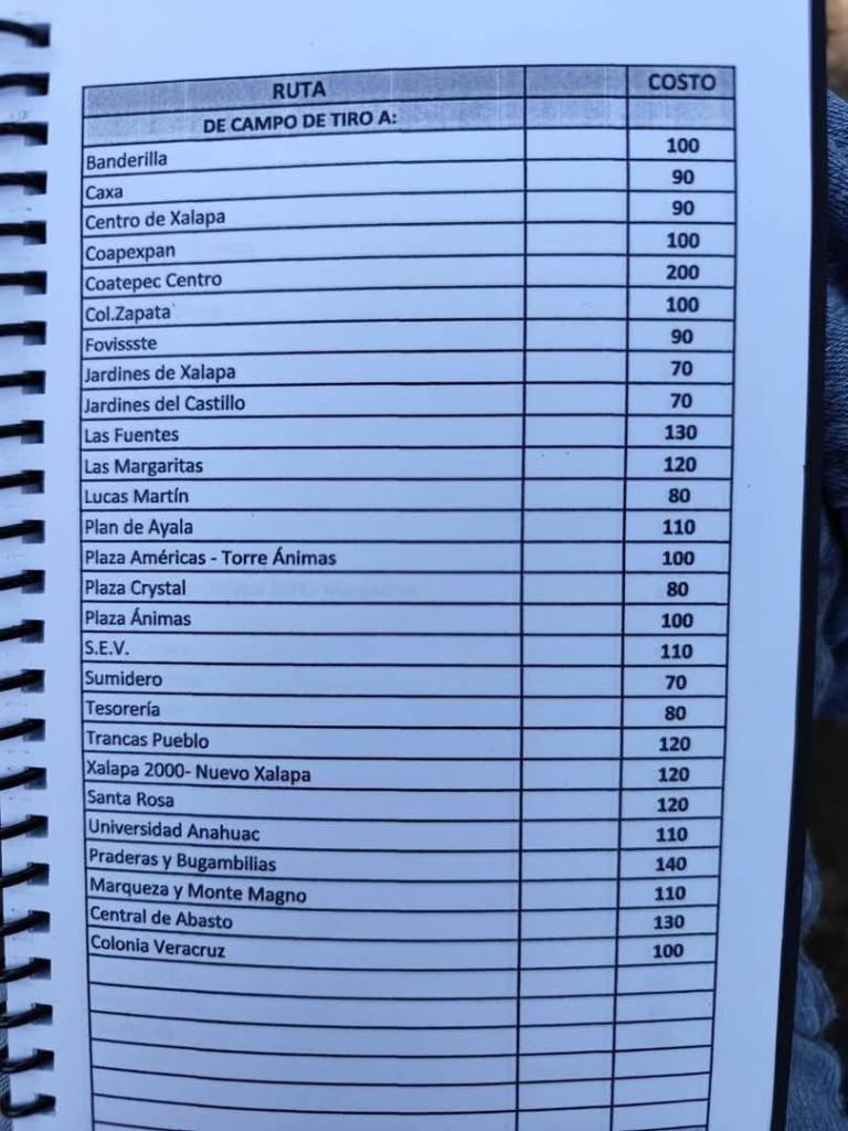 Acostumbrados a medrar con base a la omisión de responsabilidades de gobiernos blandengues morenistas, panistas y priistas que antecedieron a Rocío Nahle, este grupo, escudado en sus organizaciones gremiales se levantó en pie de lucha por la injusticia de que iban a ser objeto por parte del nuevo gobierno estatal. ¿Injusticia? Basta ver los cuadernillos de tarifas de taxis en que se escudan muchos de esos trabajadores del volante, en donde impusieron de cuánto es cada corrida en Xalapa, para darse cuenta a que intereses responden fielmente. Basta un botón de muestra en las siguientes fotos, en la que, de sus pistolotas, algunas agrupaciones taxistas se basan: