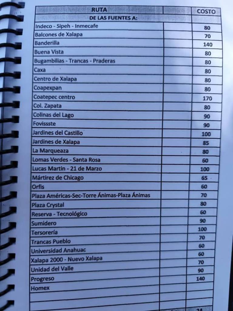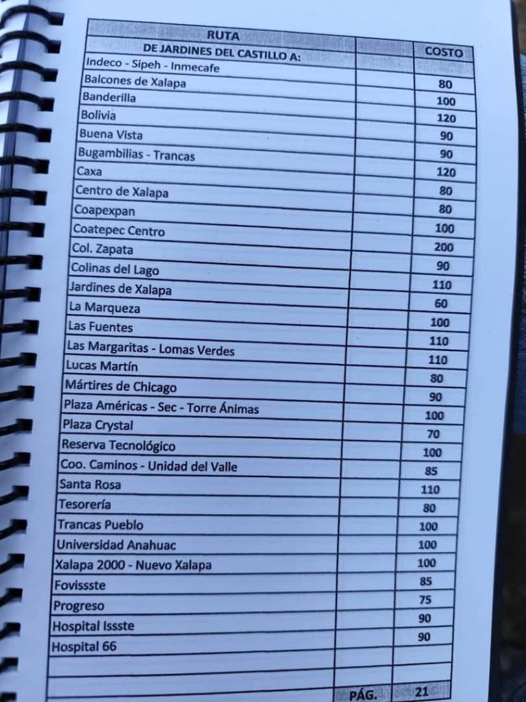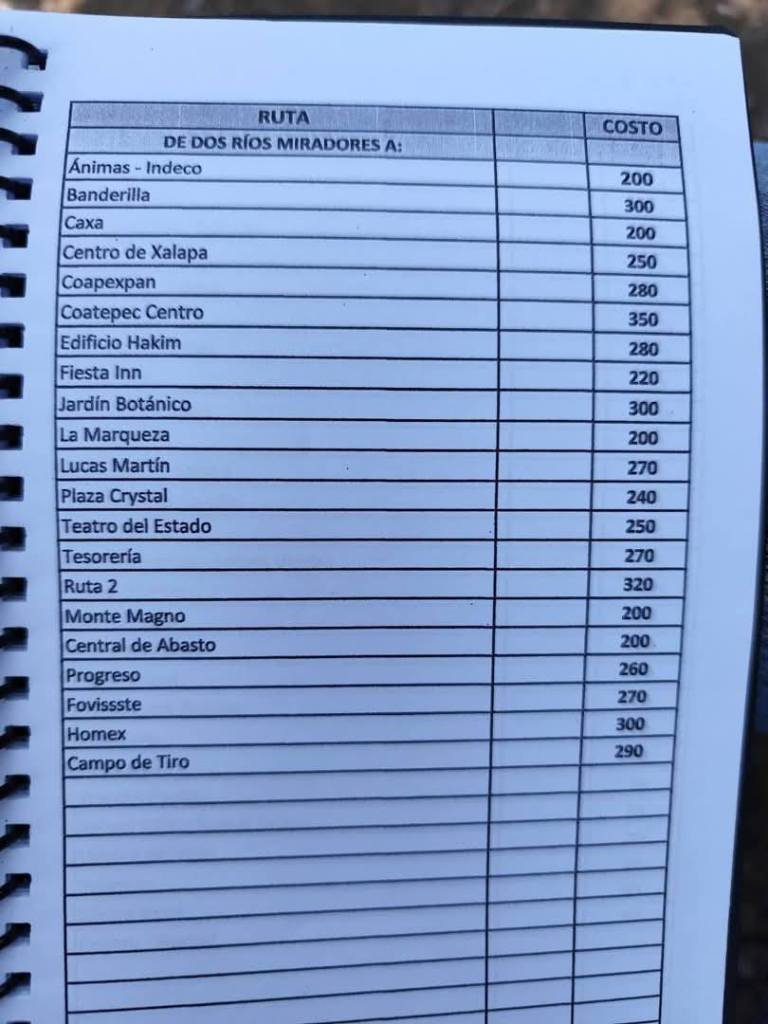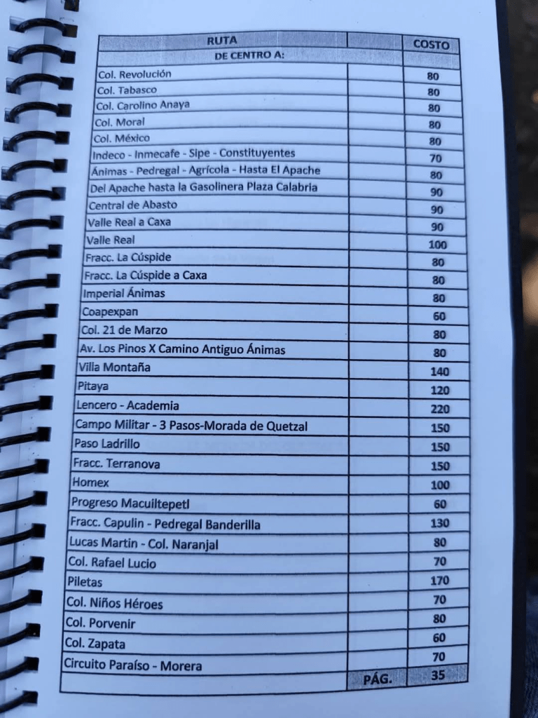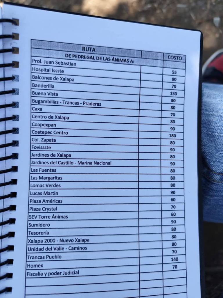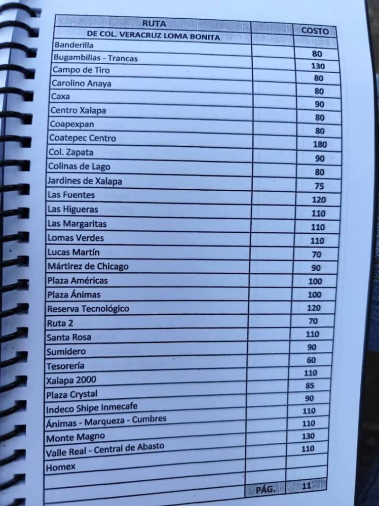 Acostumbrados a medrar con base a la omisión de responsabilidades de gobiernos blandengues morenistas, panistas y priistas que antecedieron a Rocío Nahle, este grupo, escudado en sus organizaciones gremiales se levantó en pie de lucha por la injusticia de que iban a ser objeto por parte del nuevo gobierno estatal. ¿Injusticia? Basta ver los cuadernillos de tarifas de taxis en que se escudan muchos de esos trabajadores del volante, en donde impusieron de cuánto es cada corrida en Xalapa, para darse cuenta a que intereses responden fielmente. Basta un botón de muestra en las siguientes fotos, en la que, de sus pistolotas, algunas agrupaciones taxistas se basan: