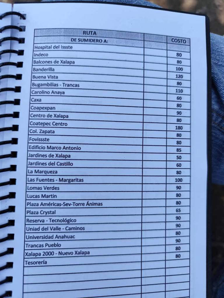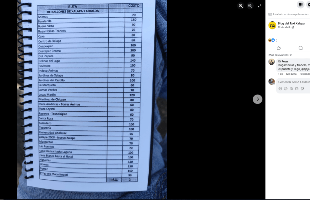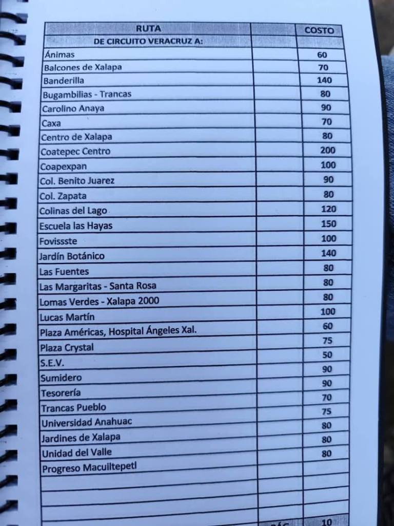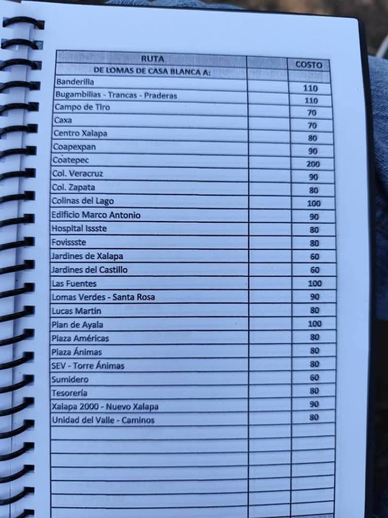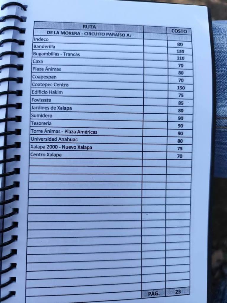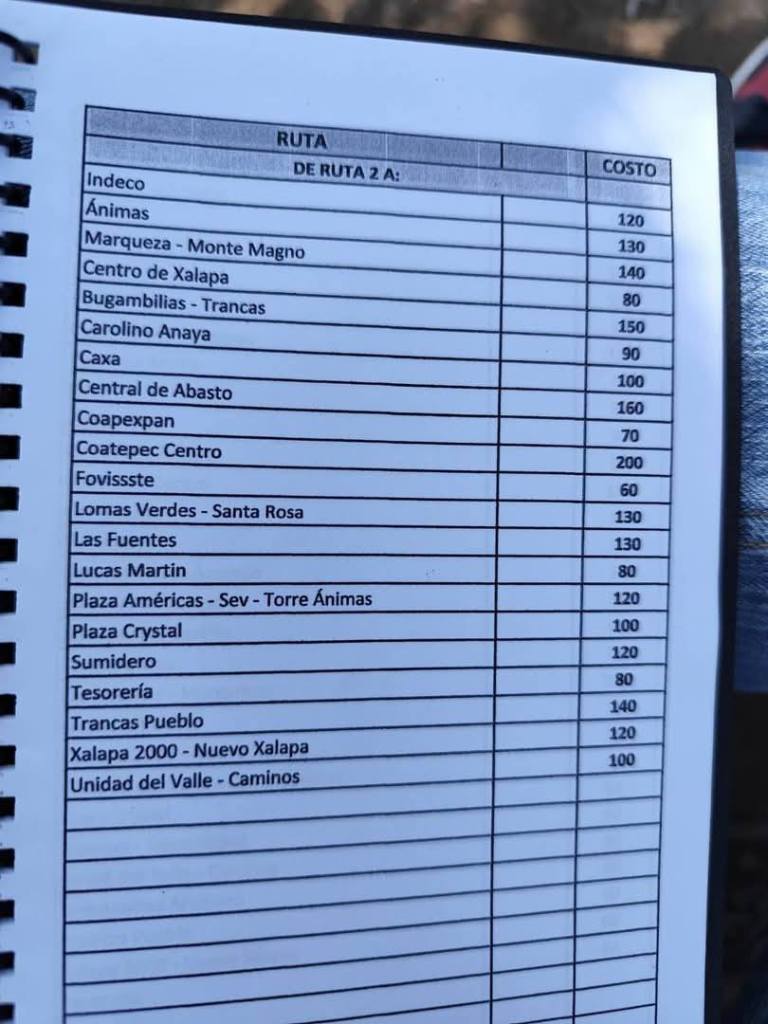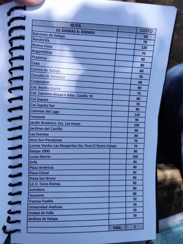 Acostumbrados a medrar con base a la omisión de responsabilidades de gobiernos blandengues morenistas, panistas y priistas que antecedieron a Rocío Nahle, este grupo, escudado en sus organizaciones gremiales se levantó en pie de lucha por la injusticia de que iban a ser objeto por parte del nuevo gobierno estatal. ¿Injusticia? Basta ver los cuadernillos de tarifas de taxis en que se escudan muchos de esos trabajadores del volante, en donde impusieron de cuánto es cada corrida en Xalapa, para darse cuenta a que intereses responden fielmente. Basta un botón de muestra en las siguientes fotos, en la que, de sus pistolotas, algunas agrupaciones taxistas se basan: