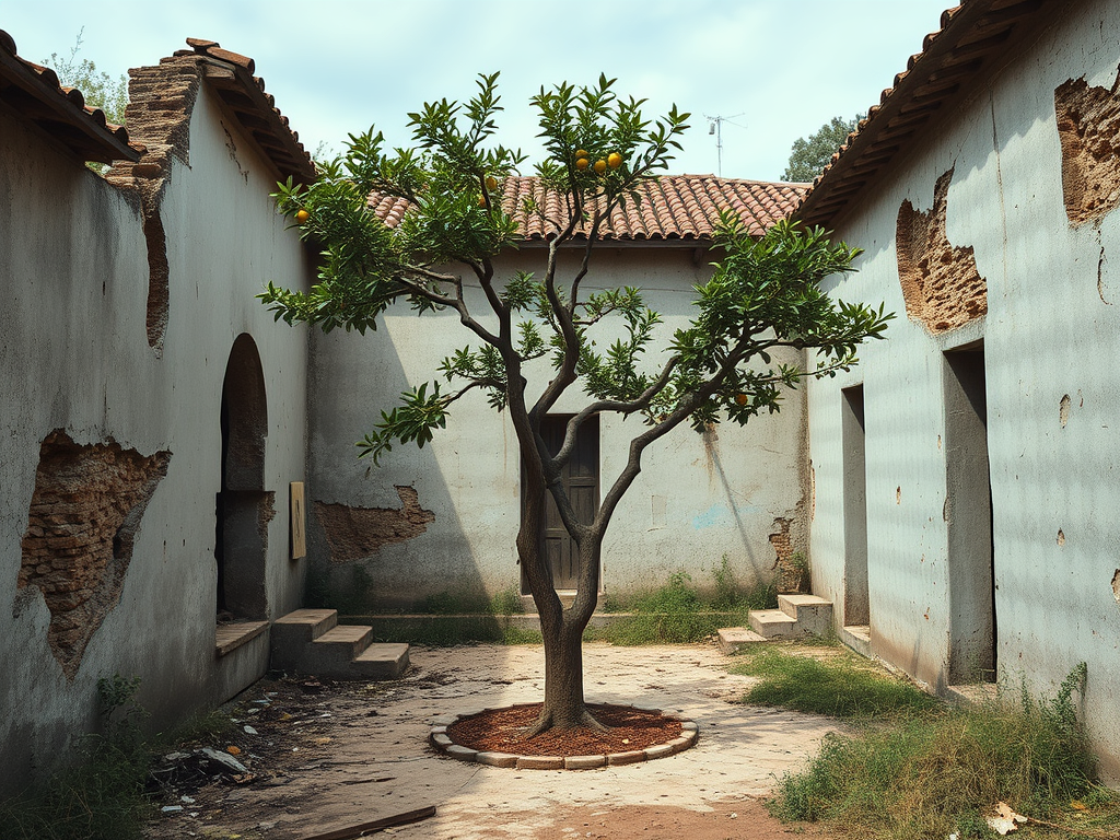 La hacienda llevaba quince años abandonada desde que la familia Irigoyen se fue a Orizaba tras la muerte misteriosa de tres de sus hijos en una sola temporada de lluvias. Las paredes de adobe seguían en pie pero cubiertas de musgo negro. Los arcos del corredor habían perdido el aplanado y mostraban sus entrañas de piedra volcánica. En el patio central, un naranjo solitario crecía torcido hacia el norte, como si huyera de algo que estaba al sur.
