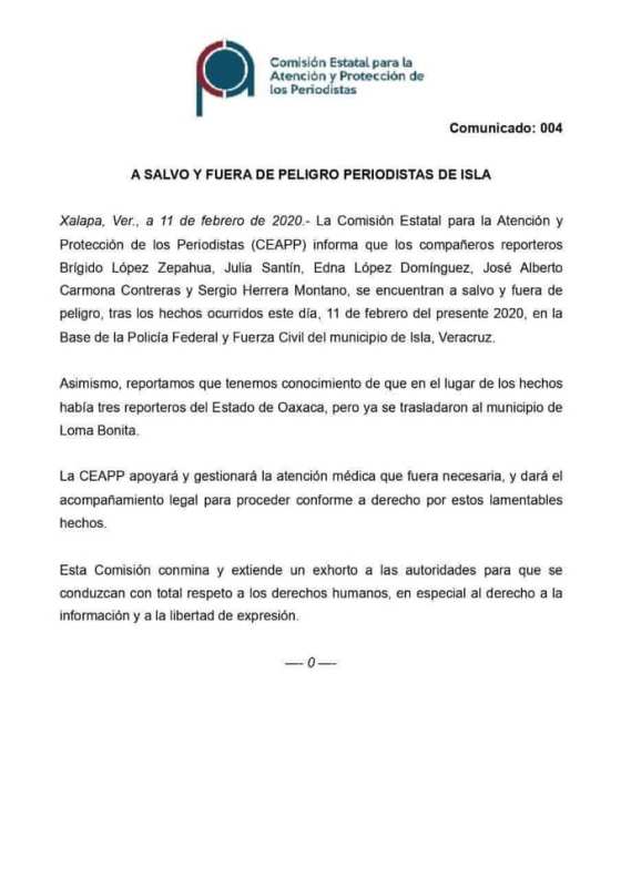 Boletín informativo de la Comisión Estatal para la Atención y Protección de los Periodistas de Veracruz Xalapa, Ver., a 11 … Más