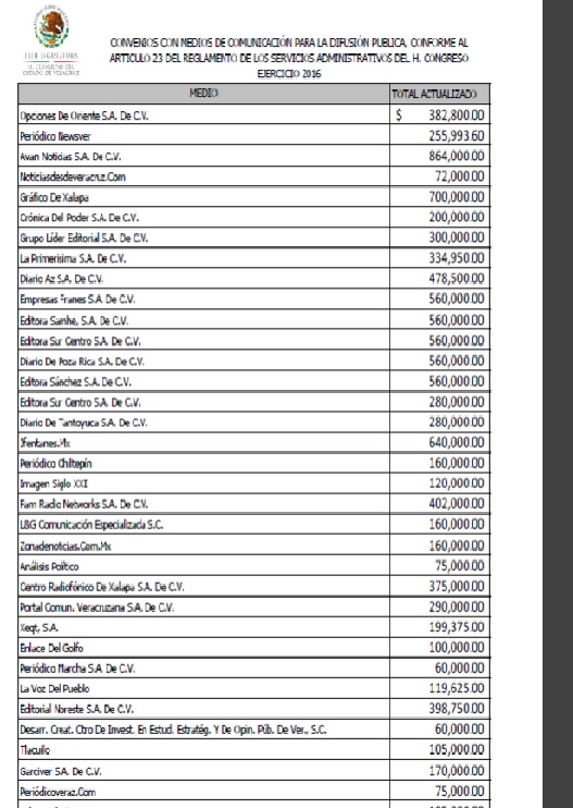 Carta Aclaratoria a la Columna Bitácora sobre convenios en el periodo 2016 del Congreso del Estado