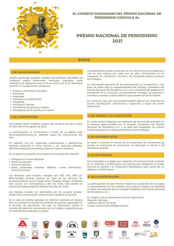 Nuestra colega, la Dra. Guadalupe Hernández Mar, presidenta del Premio Nacional de Periodismo, convoca al envío de trabajos periodísticos hasta el 17 de junio