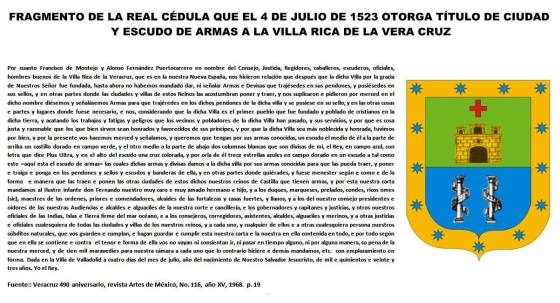 LA VILLA RICA DE LA VERA CRUZ OBTIENE TÍTULO DE CIUDAD Y ESCUDO DE ARMAS EL 4 DE JULIO DE 1523