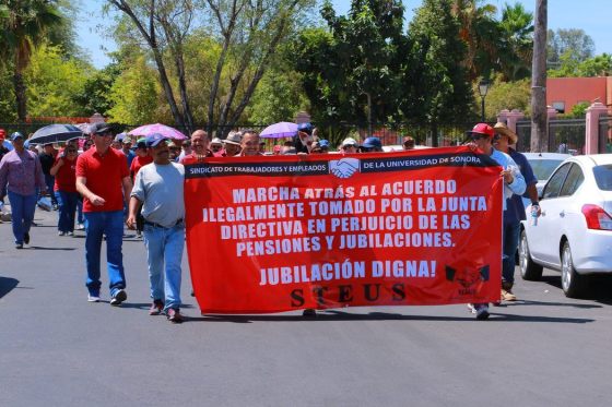 Protestan trabajadores académicos y administrativos de la Universidad de Sonora contra rebaja de sus pensiones hasta un 70 por ciento