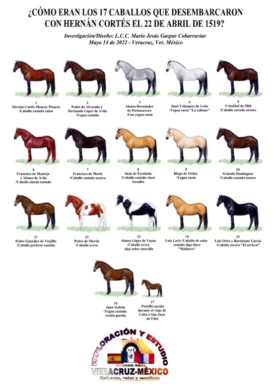 ¿COMO ERAN LOS 17 CABALLOS QUE DESEMBARCARON CON HERNÁN CORTÉS EL 22 DE ABRIL DE 1519?