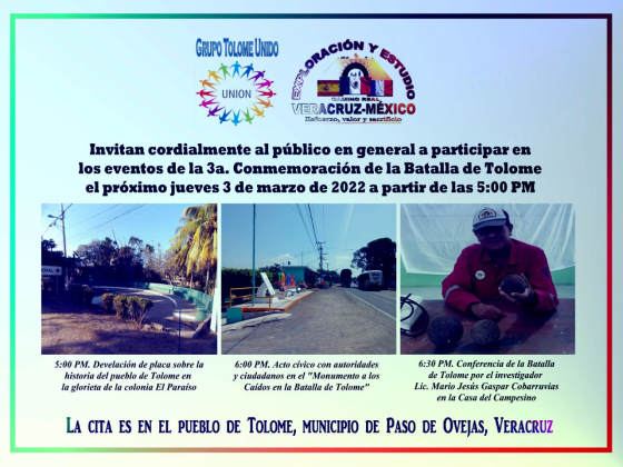 Hoy jueves 3 de marzo conmemoran el 190 Aniversario de la Batalla de Tolome y dará conferencia alusiva nuestro colega, Mario Jesús Gaspar Cobarrubias