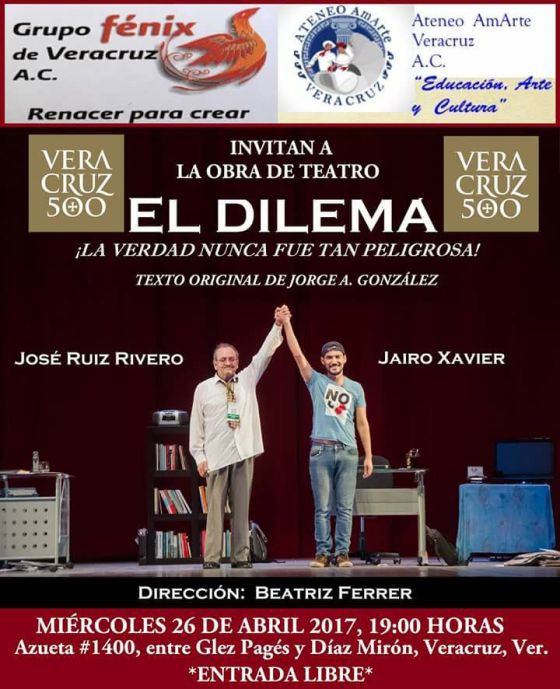 EL DILEMA VIVE. NO TE PIERDAS ESTA EXTRAORDINARIA OBRA DE TEATRO ESCRITA, DIRIGIDA Y ACTUADA POR VERACRUZANOS.