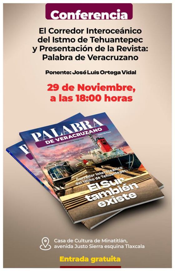 El colega José Luis Ortega Vidal dará conferencia y presentará la revista «Palabra de Veracruzano» este 29 de noviembre en la Casa de la Cultura de Minatitlán